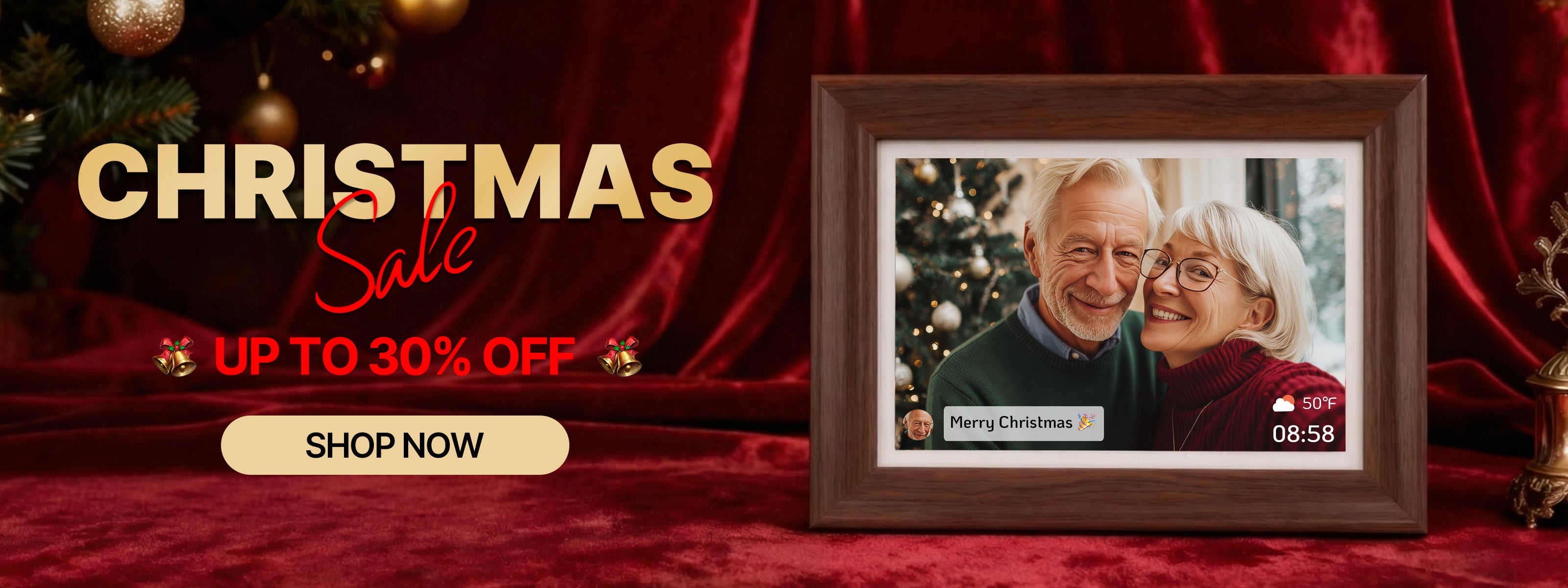A smart frame that keeps families connected. Upload photos and videos from the app, email, Google Photos, USB, or SD card.