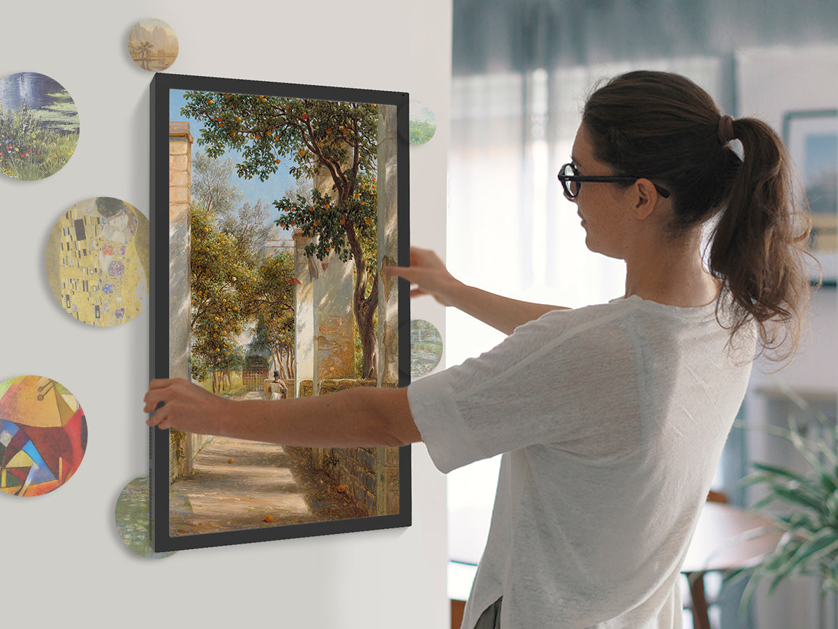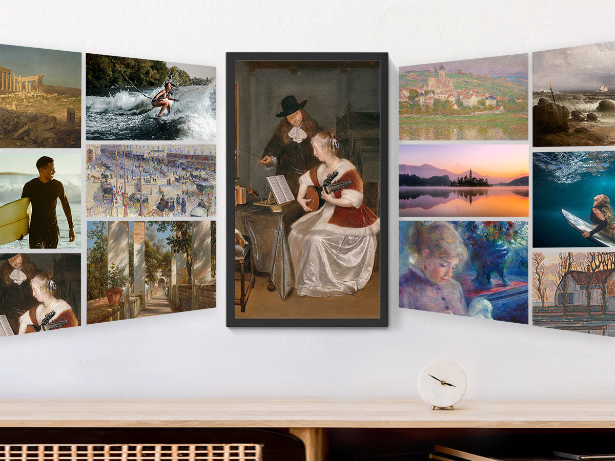 We use the latest technology to make your entire art collection and photo album come alive on your wall. Now you can showcase and explore lifelike details and colors from home.