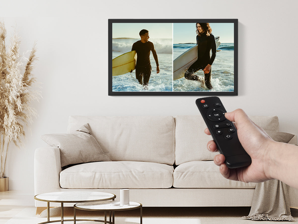 Crafted in minimalist modern design, this digital art frame flawlessly matches any interior style and makes the perfect decorative accent for your home.