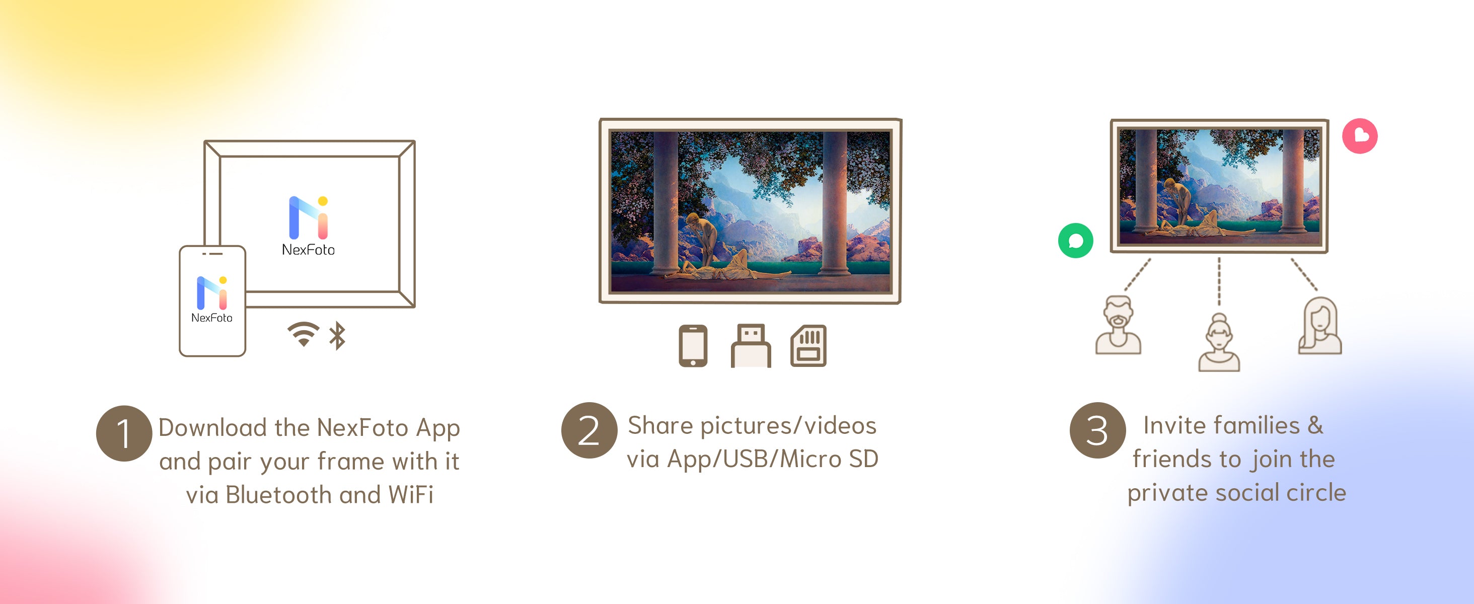 Download the Nexfoto app to set up your digital frame and explore its latest features. Our brand-new software makes our all-in-one frame incredibly user-friendly and innovative.
