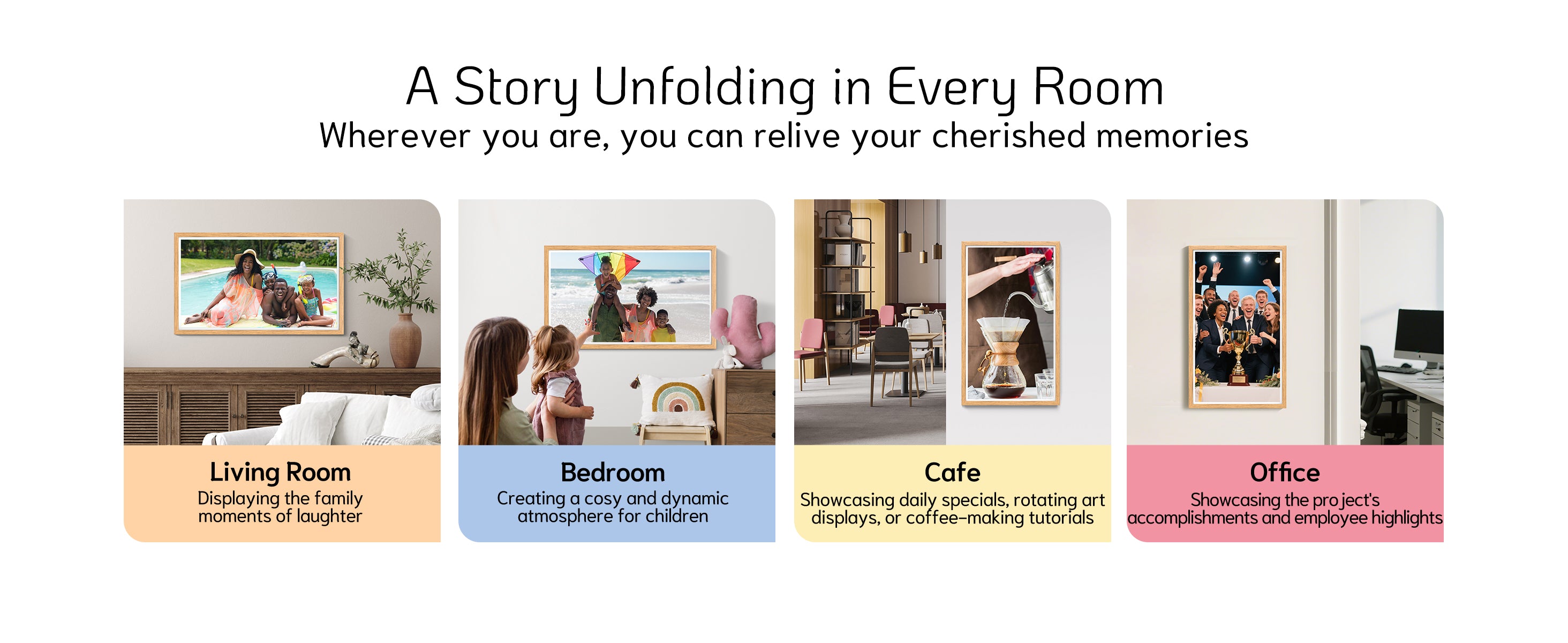Whether hung in landscape or portrait mode, simply rotate it on the wall without detaching, and the images will automatically adapt to the optimal orientation for a perfect fit.