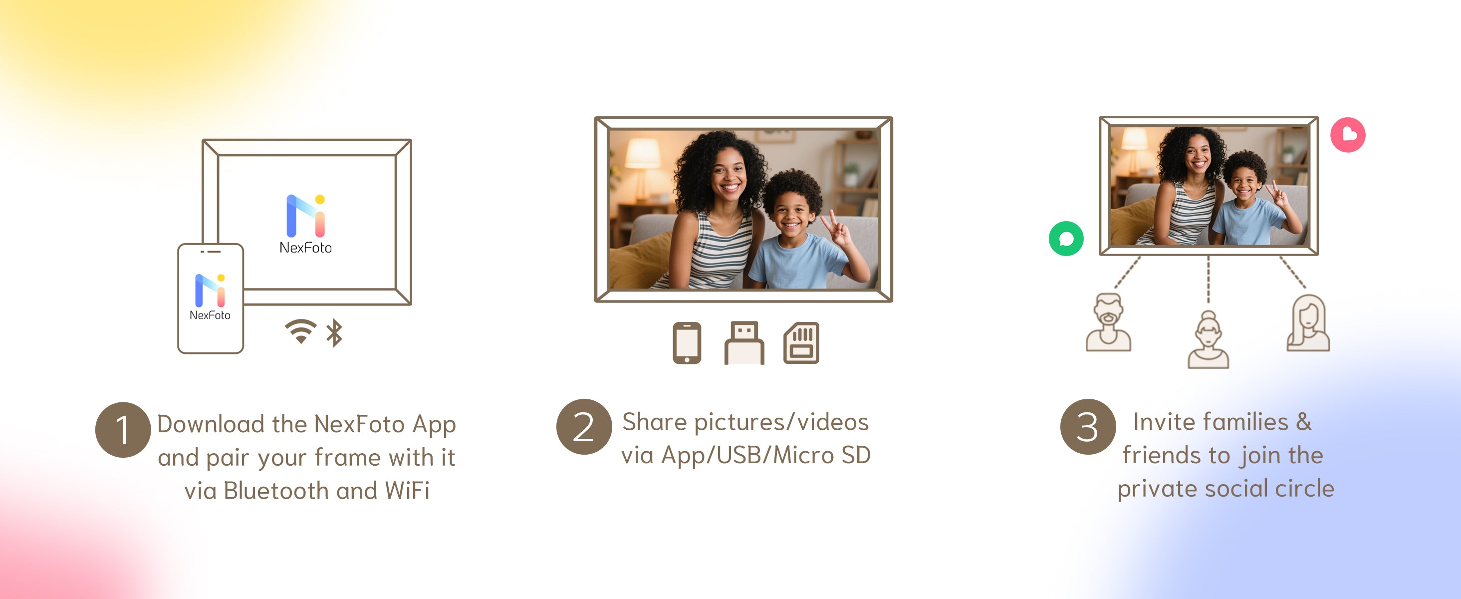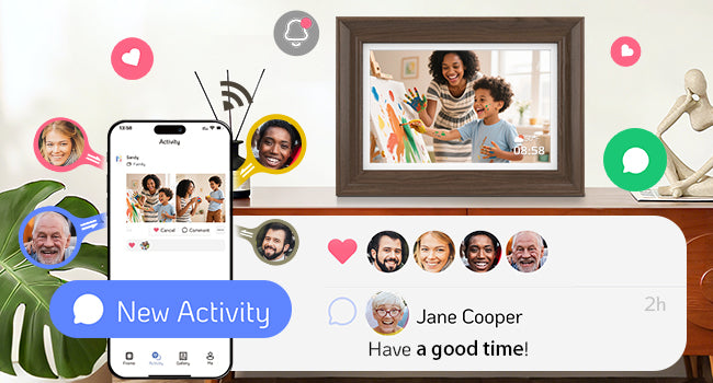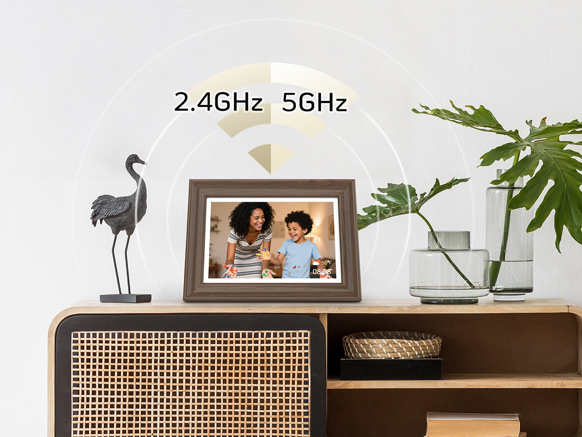 NexFoto digital frame is compatible with 2.4GHz and 5GHz, with faster transmission and higher efficiency.