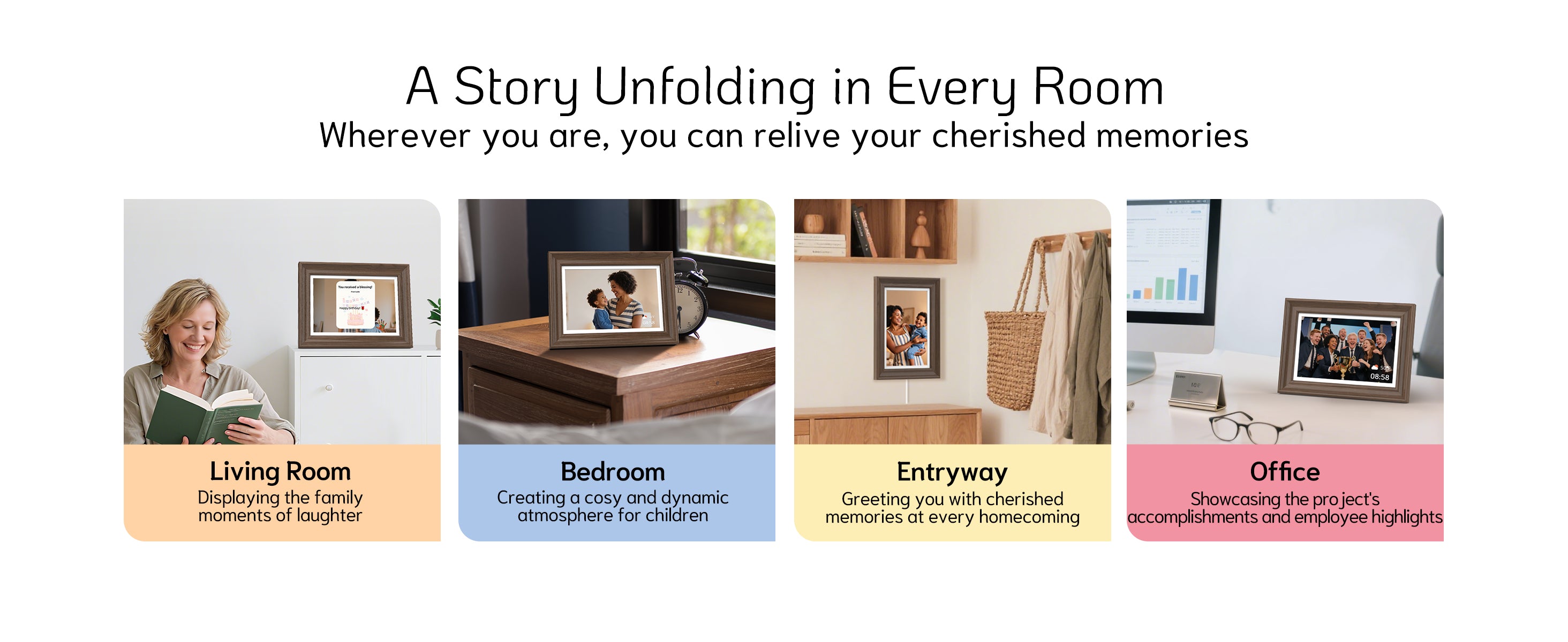Featured with an IPS extra-wide viewing angle display, all your treasured memories will be presented in stunning image quality with vivid colors and crisp details.