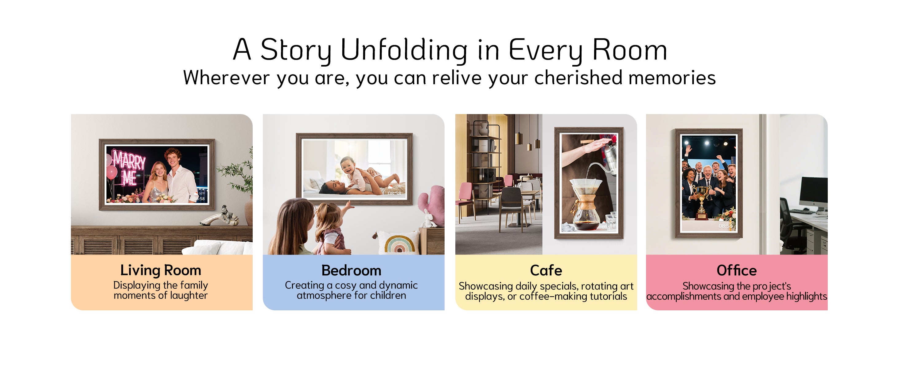 Featured with an IPS extra-wide viewing angle display, all your treasured memories will be presented in stunning image quality with vivid colors and crisp details.