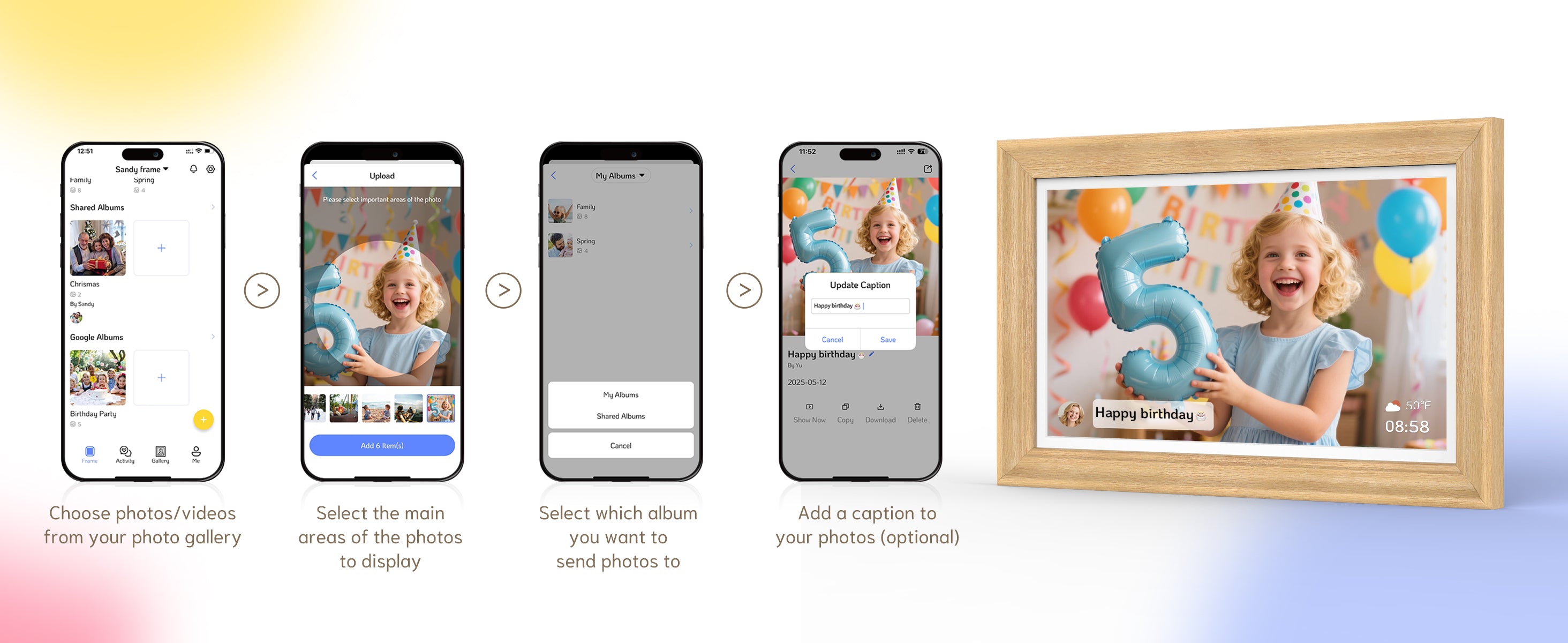 Stay connected with your entire family through one smart display! This WiFi-enabled digital picture frame allows multiple users to contribute photos remotely from anywhere in the world.