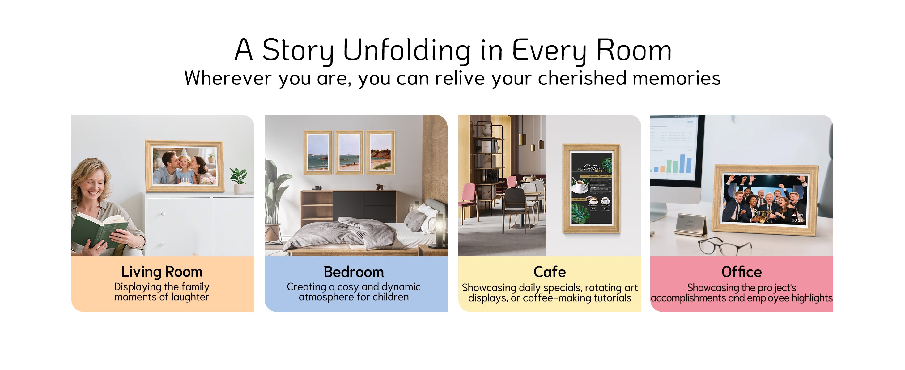 Featured with an IPS extra-wide viewing angle display, all your treasured memories will be presented in stunning image quality with vivid colors and crisp details.