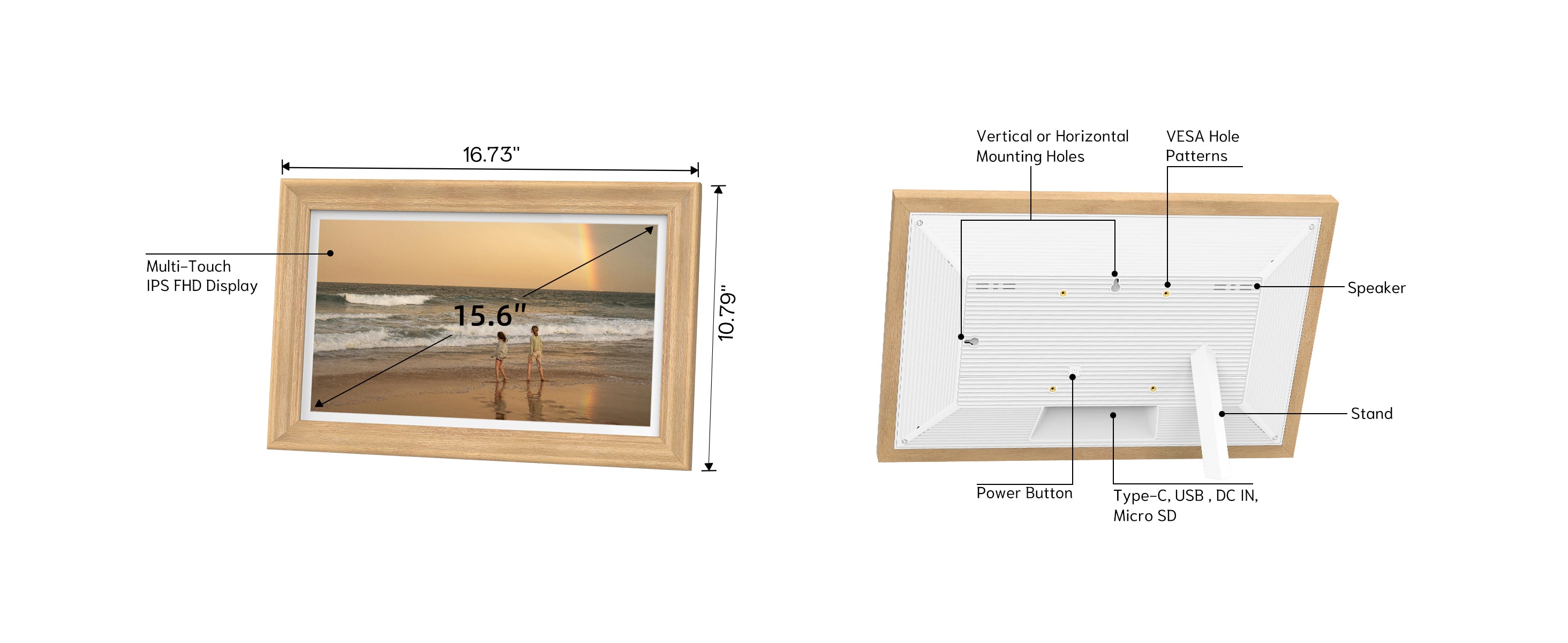 NexFoto Classic Pro 16 | 15.6 inch Digital Picture Frame - Wood