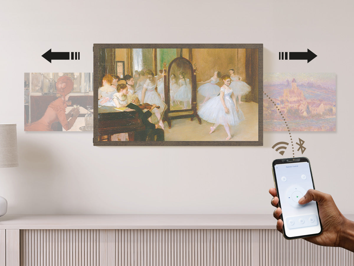 Whether hung in landscape or portrait mode, simply rotate it on the wall without detaching, and the images will automatically adapt to the optimal orientation for a perfect fit.