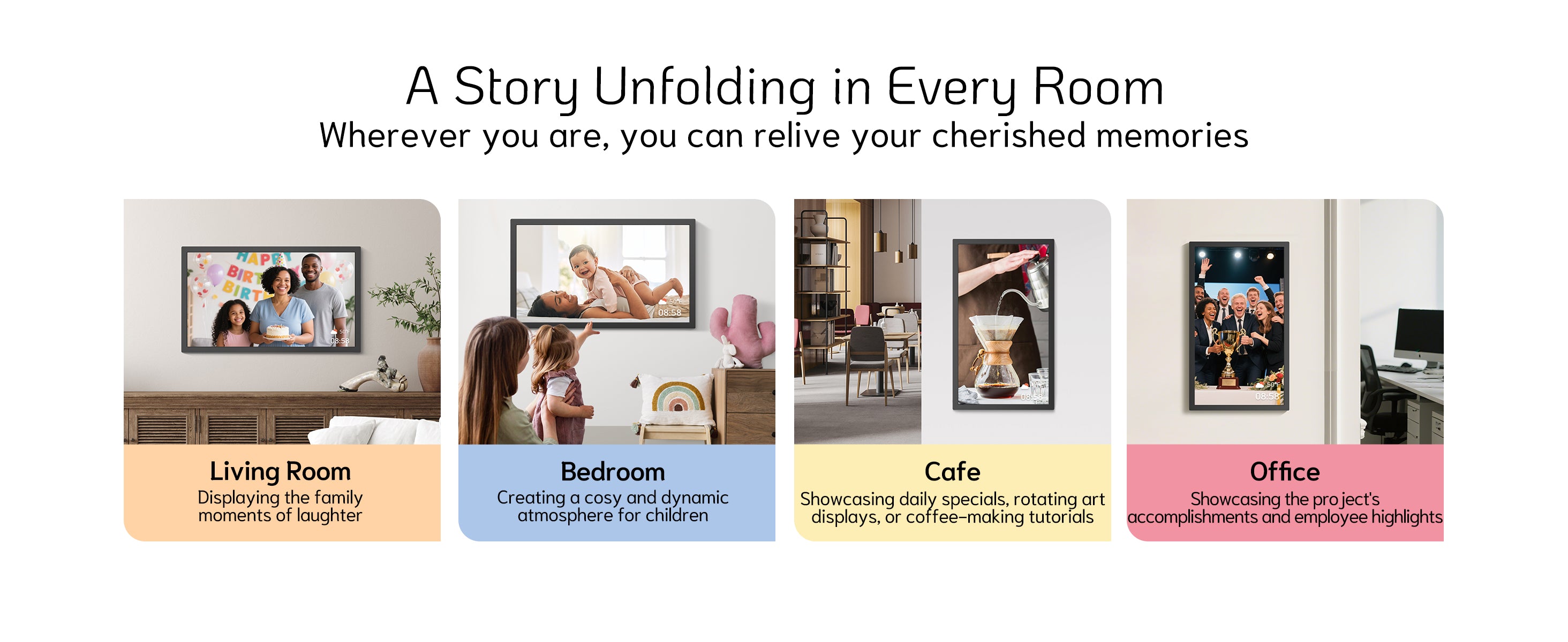 Featured with an IPS extra-wide viewing angle display, all your treasured memories will be presented in stunning image quality with vivid colors and crisp details.