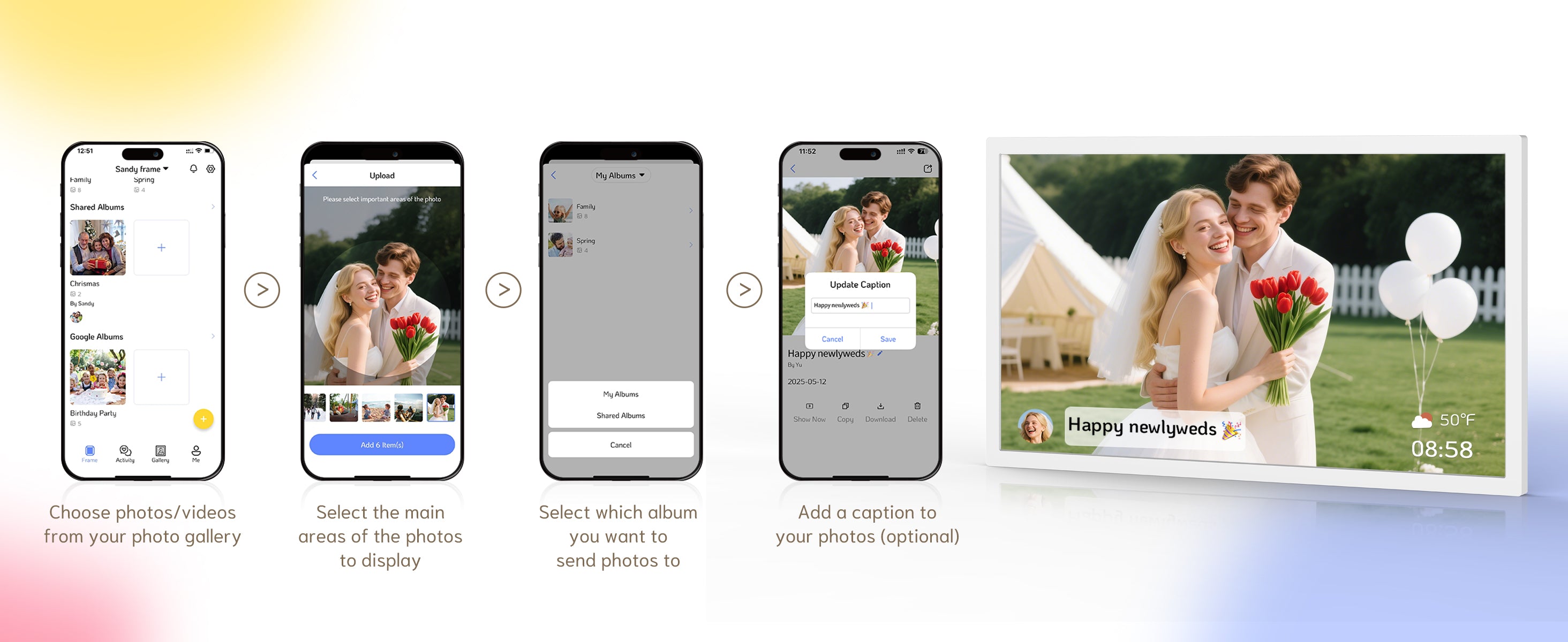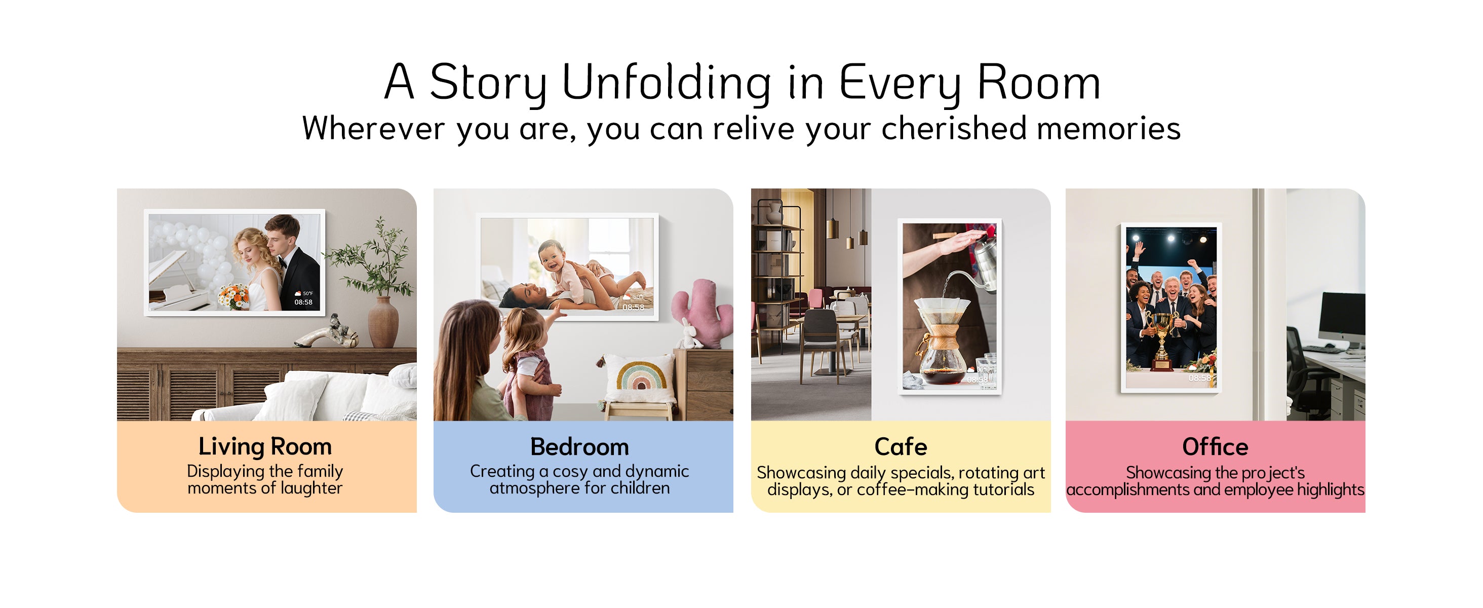 Featured with an IPS extra-wide viewing angle display, all your treasured memories will be presented in stunning image quality with vivid colors and crisp details.